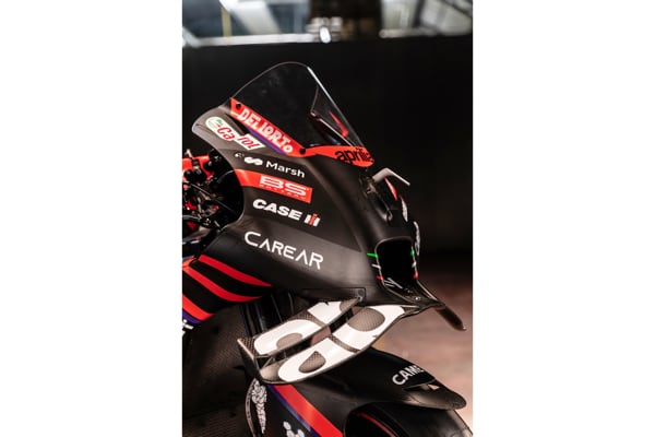 L'aerodinamica riprende i concetti introdotti nel 2022 come la fiancata sagomata o la caratteristica configurazione dell'ala anteriore e li evolve confermando la leadership tecnologica di Aprilia Racing nel settore. Il tema elettronico vede l'introduzione di una nuova ECU Magneti Marelli e l'affinamento nella gestione delle strategie, oggetto di un lavoro costante che proseguirà gara dopo gara.