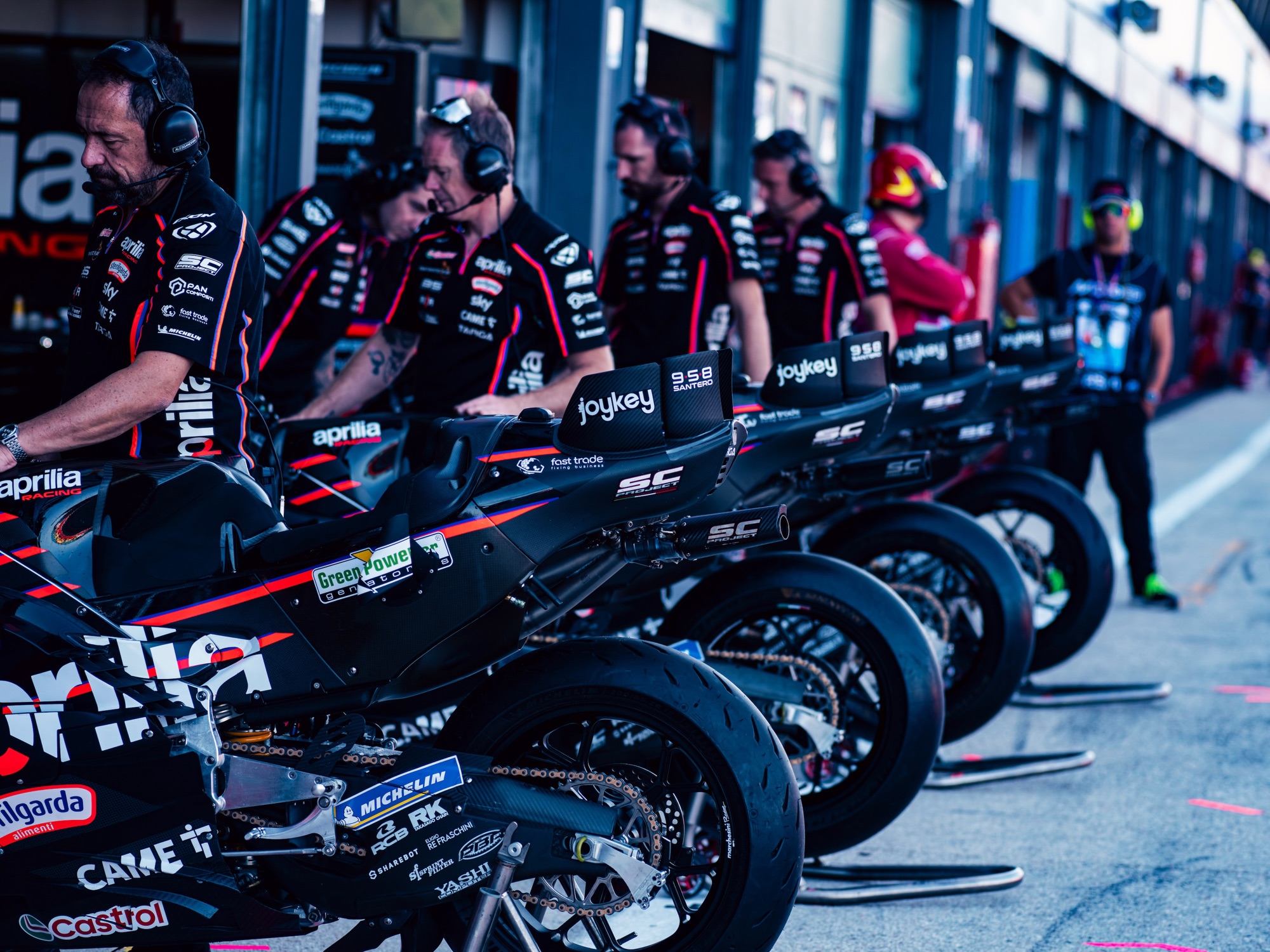 MARCO DE ROSSI E STEFANO LAVAZZA, FONDATORI E TITOLARI DI SC-PROJECT: “Siamo molto felici di estendere e consolidare la collaborazione con Aprilia Racing ad un livello di eccellenza assoluta. I nostri reparti lavorano da anni in completa sinergia con il Reparto Corse di Aprilia Racing e noi siamo fermamente convinti che solo attraverso una partnership stretta, duratura ed estremamente professionale si possa ambire a raggiungere traguardi sempre più ambiziosi. Tutto questo non solo in ambito tecnico ma anche in ambito commerciale e di soddisfazione per gli appassionati del marchio Aprilia e del Made in Italy di altissima qualità”.