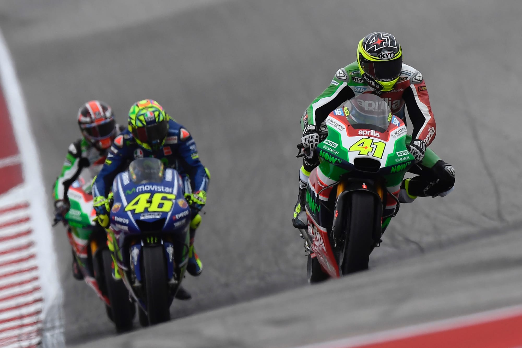 ALEIX ESPARGARO' (moto n. 41): “Fin dai primi giri ho avuto un brutto feeling con la gomma anteriore, continuava a chiudere. Ho pensato fosse colpa del serbatoio pieno ma le cose sono peggiorate giro dopo giro, tanto che a un certo punto non stavo più guidando ma semplicemente evitando la caduta. Entrare ai box per me è sempre l'ultimo pensiero, mi sembra una mancanza di rispetto nei confronti del lavoro del team, ma oggi non ho potuto evitarlo. Rientrato in pista con una nuova gomma ho girato sul mio ritmo senza forzare, con i tempi che ci aspettavamo. Ora voglio dimenticare in fretta questo weekend, già tra due giorni saremo in pista al Mugello per continuare a lavorare e farci trovare pronti alle gare europee”.