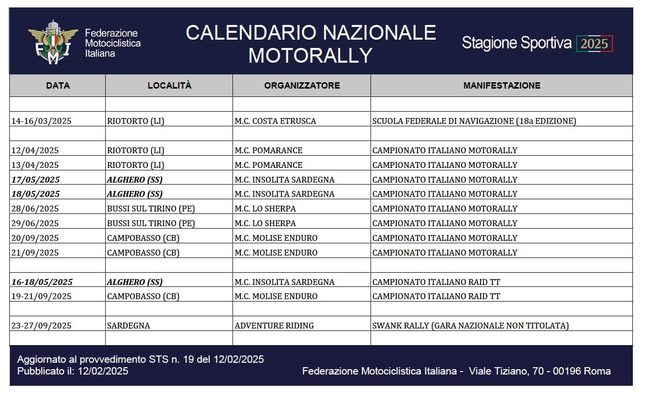 FEDERAZIONE MOTOCICLISTICA ITALIANA – CALENDARIO NAZIONALE MOTORALLY.