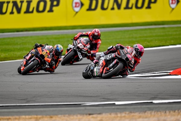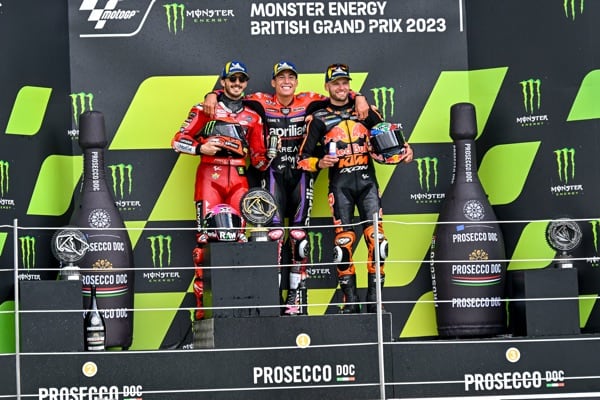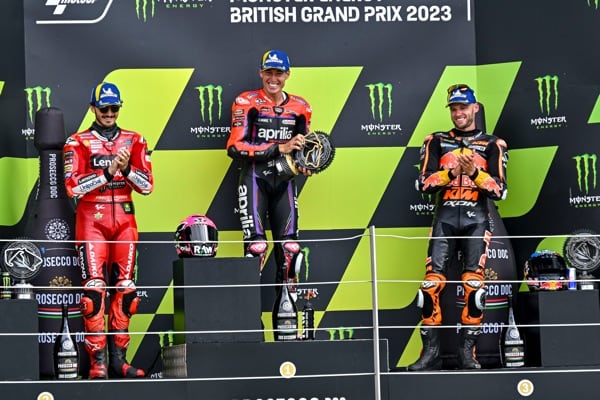 PRIMO PODIO APRILIA NELLA SPRINT: VIÑALES È TERZO A SILVERSTONE. IL BEL QUINTO POSTO DI ESPARGARÓ CONFERMA LA BELLA PROVA DI APRILIA.
