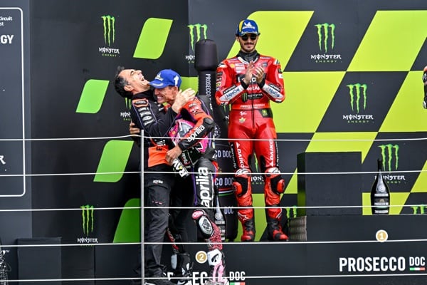 Aleix Espargaró (moto n. 41): “Oggi mi sono reso subito conto di poter fare bene. L'Aprilia qui aveva trazione, in alcune curve sapevo di avere margine su Bagnaia. Ho preferito però aspettare fino all'ultimo giro, specialmente quando ho visto qualche goccia di pioggia. C'erano punti davvero scivolosi, era facile commettere errori. Oltre a questo, notavo che Pecco stava gestendo le gomme e non volevo rischiare di farmi battere sul finale.