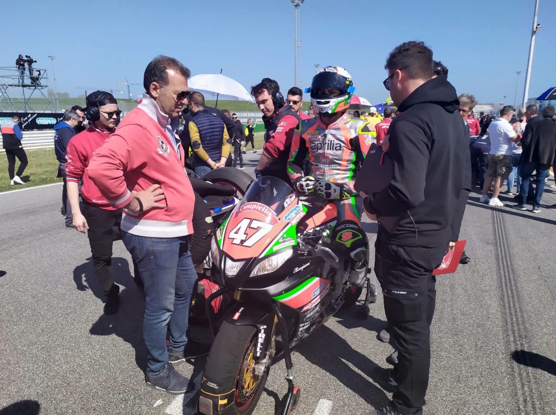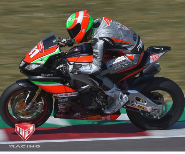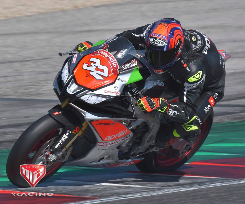 Una bella prestazione del pilota cesenate della scuderia Nuova M2 Racing. Lorenzo Savadori (moto n. 32) è stato Campione Italiano ed Europeo 125GP nel 2008 su Aprilia 125 RSW e, con Nuova M2 Racing all’esordio, campione 2015 nella FIM Superstock 1000 Cup su Aprilia RSV4.