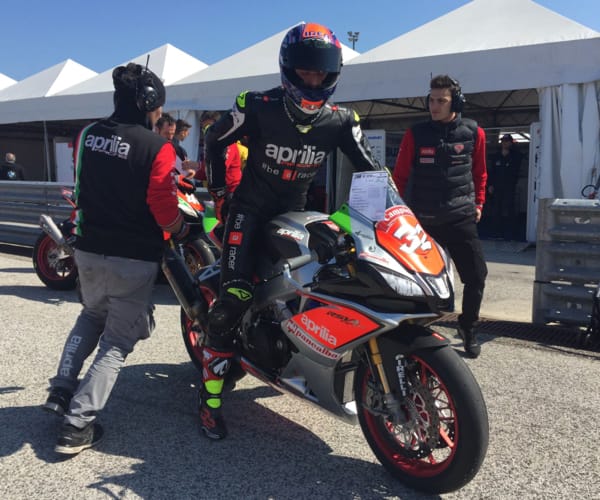 31 marzo 2019, Circuito di Misano – Lorenzo Savadori sul podio con Aprilia RSV4 FW-STK nel primo round del CIV-Campionato Italiano Velocità superbike: quarto in gara 1, corre in gara 2 conquistando il terzo posto.