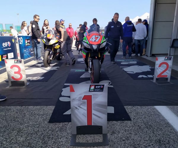 Altra vittoria a Misano per il team Nuova M2 Racing: Eddi La Marra (moto n. 47) vince la gara di esordio del National Trophy 1000 in sella alla nuova Aprilia RSV4 1100 Factory, affiancato dai piloti Enzo Chiappello, Federico D’Annunzio e Alex Sgroi. Prossimo round: al Mugello International Circuit, 27-28 aprile 2019.