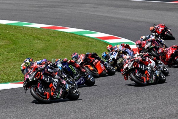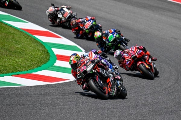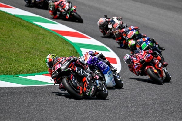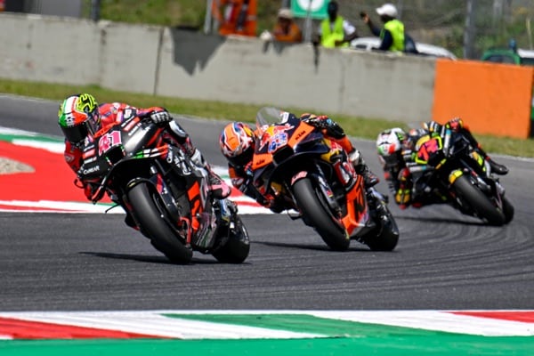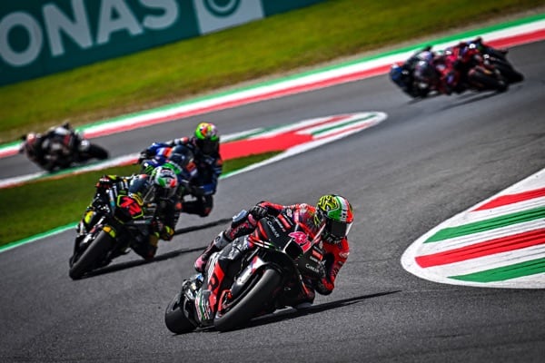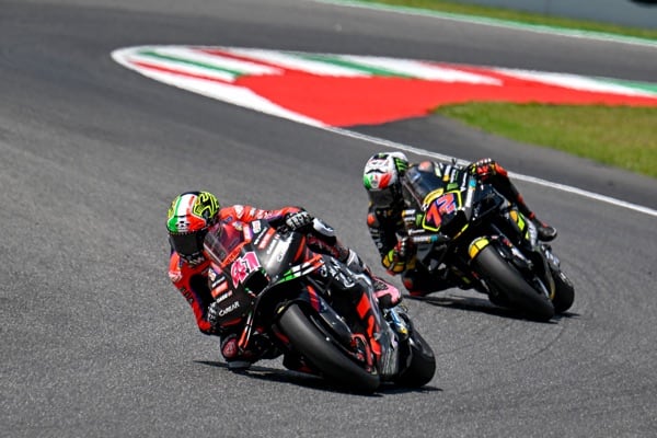 11 giugno 2023 (Circuito Internazionale del Mugello) - Aleix Espargaró ha tenuto fede alla sua fama di combattente nel GP d’Italia. Malgrado l’infortunio al piede, che lo ha afflitto nel weekend, e ben assecondato dalla sua Aprilia RS-GP, ha chiuso al sesto posto dopo una buona gara e una lotta serrata, ricca di sorpassi, che negli ultimi giri lo ha visto prevalere su Miller e Bezzecchi.