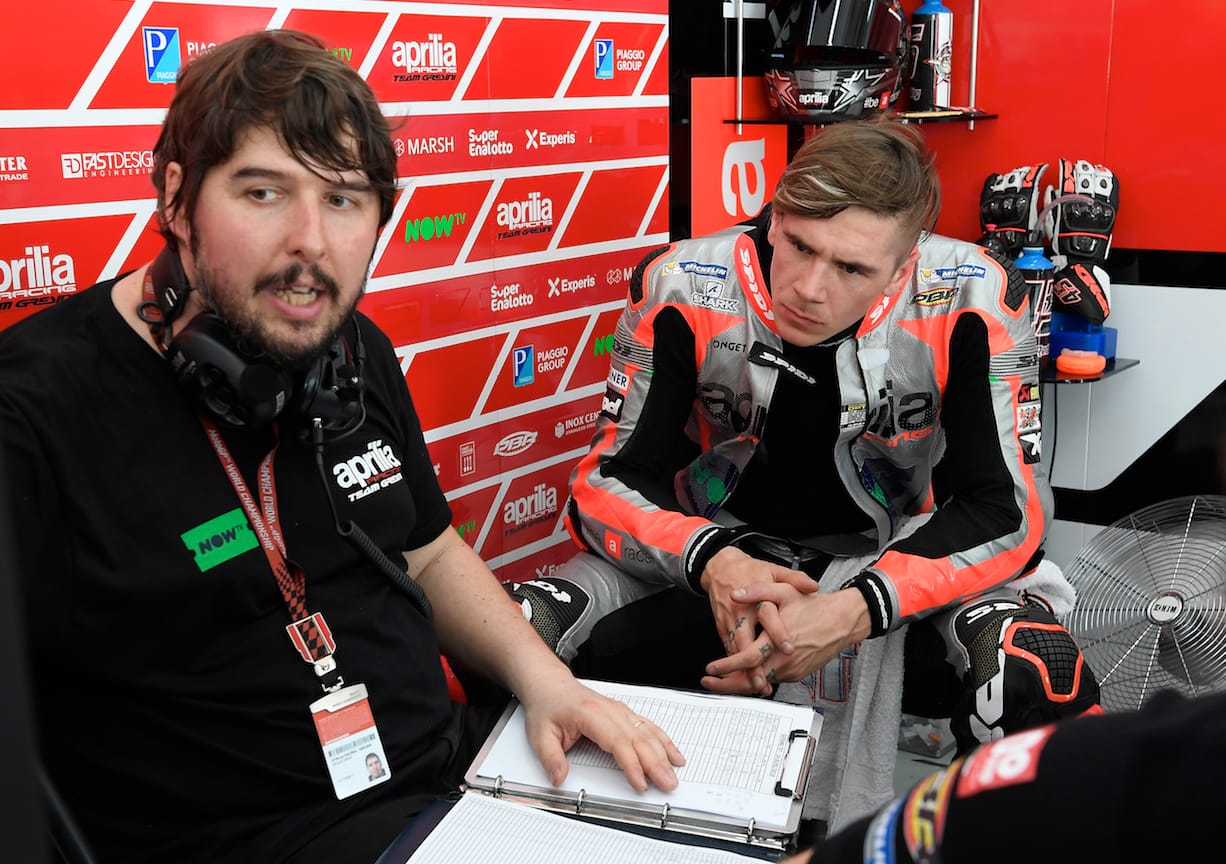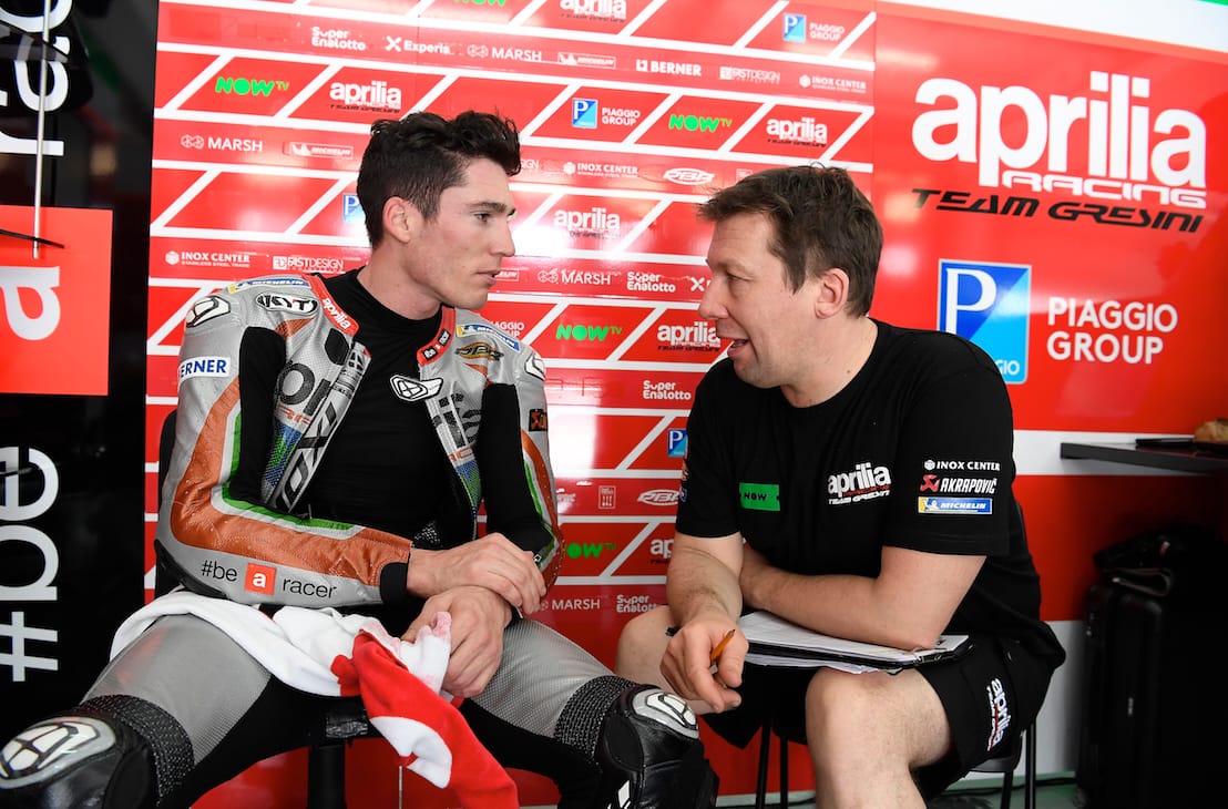Sia Aleix Espargaro' sia Scott Redding hanno avuto modo di salire in sella alla nuova moto, dopo aver preso confidenza con la pista e i ritmi della MotoGP utilizzando le RS-GP in versione 2017. I riscontri di Aleix sono stati da subito positivi: il pilota spagnolo ha evidenziato un miglioramento globale e, soprattutto, un deciso margine di crescita offerto dalla nuova configurazione. Il suo miglior giro dei 40 totali (2'00.866) è stato realizzato con la moto 2018 senza tentare un time-attack ma con un approccio graduale, focalizzato allo sviluppo e alla analisi di ogni dettaglio tecnico.
