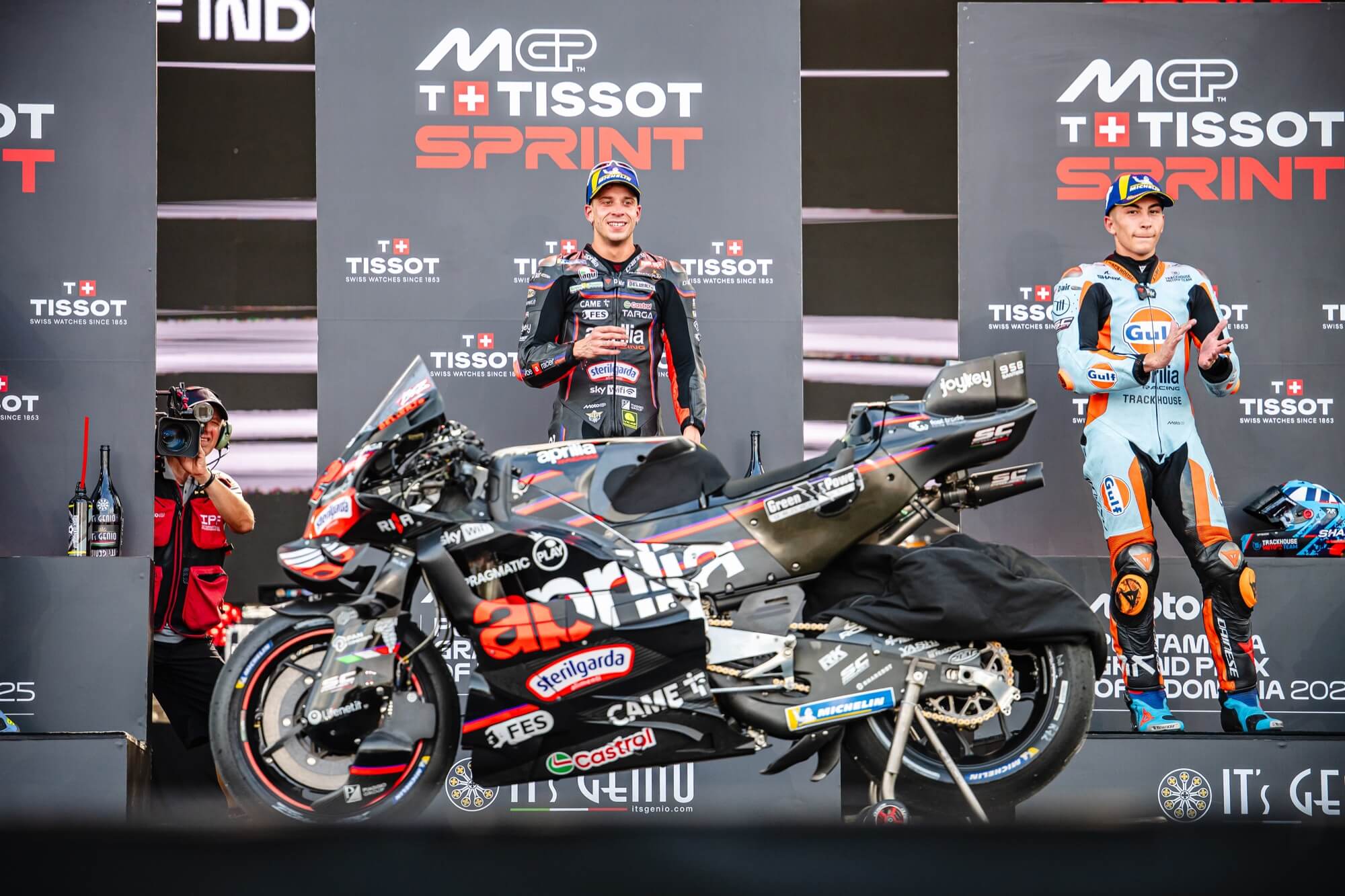 SABATO 4 OTTOBRE 2025 - IL PILOTA ITALIANO CONQUISTA UNA VITTORIA STRAORDINARIA NELLA SPRINT CON UN SORPASSO MERAVIGLIOSO ALL’ULTIMO GIRO. TERZO RAÚL FERNÁNDEZ, DEL TRACKHOUSE MOTOGP TEAM: