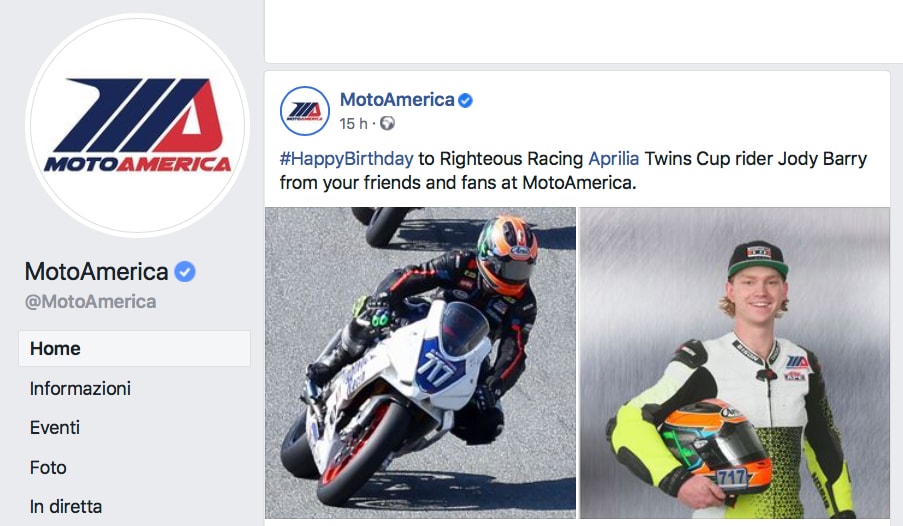 Buon compleanno… in gara, per Jody Barry. Fonte immagini: facebook.com/MotoAmerica
