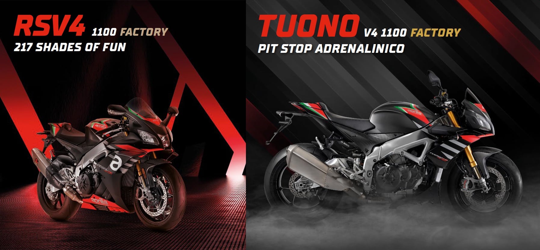 Disponibile una flotta di RSV4, top della gamma Aprilia, da far conoscere ai partecipanti. Cinque opportunità uniche per guidare in pista la nuova Aprilia RSV4 1100 Factory da 217 CV e la pluripremiata Aprilia Tuono V4 1100 Factory, entrambe con sospensioni semi-attive.