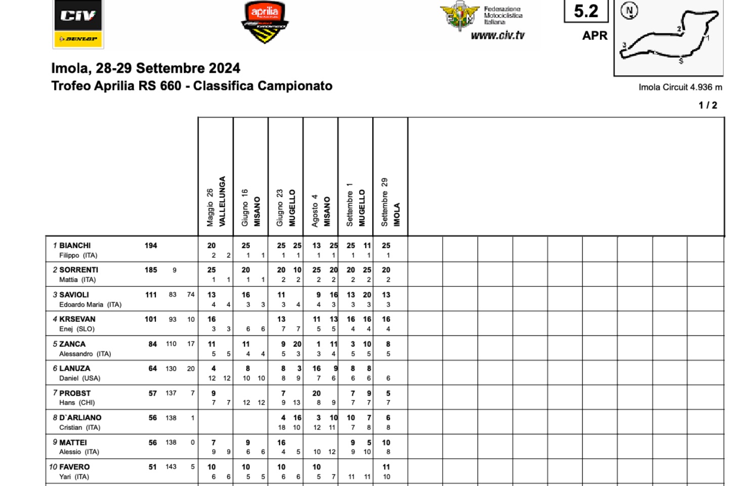 TOP TEN – CLASSIFICA GENERALE TROFEO RS 660 – 2024: