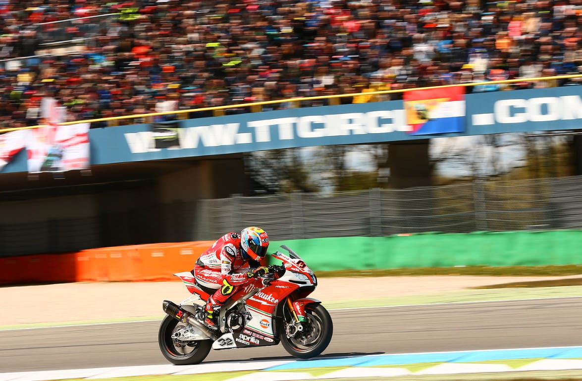 TT Circuit Assen, 28-30 Aprile 2017 – Milwaukee Aprilia ha conquistato punti con Eugene Laverty in gara 2 ad Assen, ma ha subito la sfortunata caduta di Lorenzo Savadori; si è concluso così il quarto Round del WSBK 2017. Con i piloti partiti dalla prima e seconda fila per la gara finale del weekend, le speranze erano elevate per un forte risultato per Lorenzo ed Eugene, dopo i migliori risultati dell'anno nella Gara 1. Una rapida fuga per Eugene, passato dal quinto al secondo posto nel primo giro, prima di passare oltre il pole-sitter Xavi Fores a prendere il comando della gara dal secondo giro. Il compagno di squadra Lorenzo, partendo secondo, ha avuto una fuga più lenta ed è stato impegnato in una battaglia con le Ducati di Davies e Melandri.