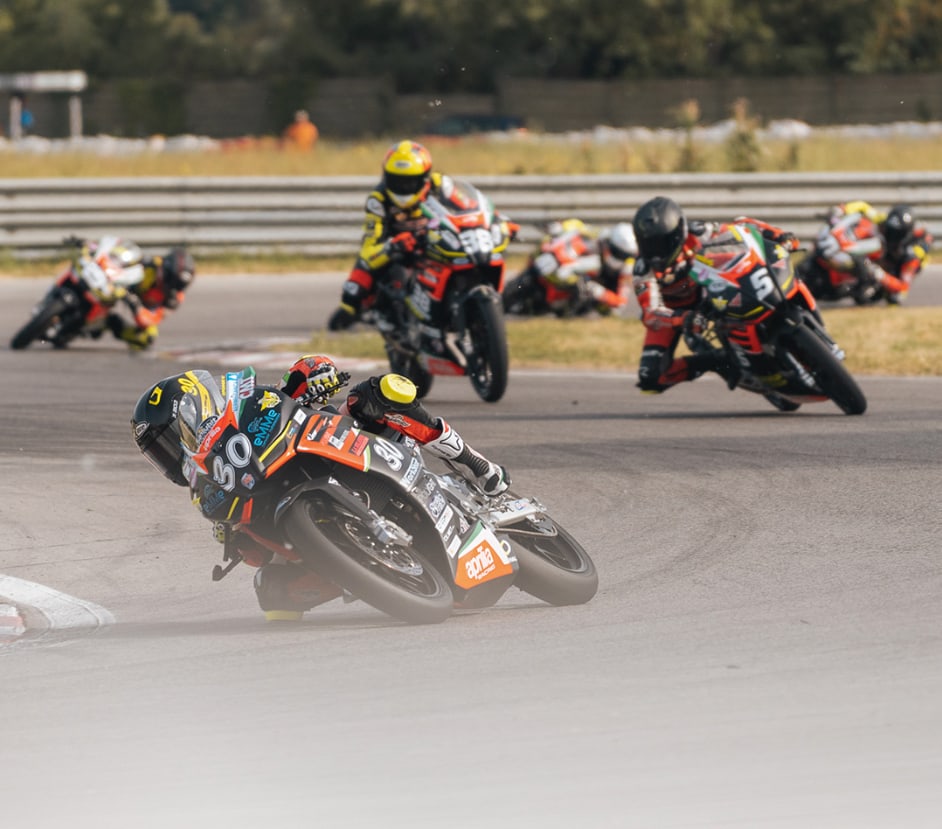 RS 250 GP. I giovani piloti del Campionato FMI Aprilia Sport Production corrono in sella alle Aprilia RS 250 SP, moto progettata e sviluppata da Aprilia Racing in collaborazione con Ohvale per l’utilizzo in pista. Spinta da un monocilindrico 4T di 250 cc, la RS 250 SP sfrutta tutto il know-how e la tecnologia del Reparto Corse di Noale, ed è equipaggiata con la migliore componentistica racing. Una dotazione tecnica di alto livello che è parte integrante del regolamento tecnico, nell’obiettivo di garantire il massimo equilibrio, così che siano i piloti con il loro talento a emergere e non la diversa preparazione dei mezzi in gara. Confermata anche la fornitura mono gomma Dunlop per le due classi Aprilia SP1 e SP2.