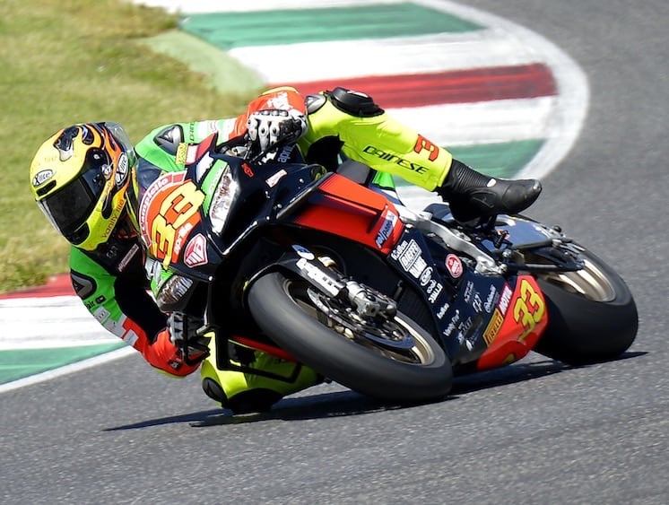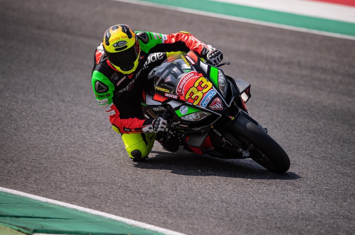 Il laziale La Marra (moto n. 47, foto sopra, ndr) viene investito al via ma riesce mantenere l’equilibrio in sella all’ RSV4 1100 Factory perdendo solo un paio di posizioni. Inizia la sua rimonta e passa settimo sotto la bandiera a scacchi.