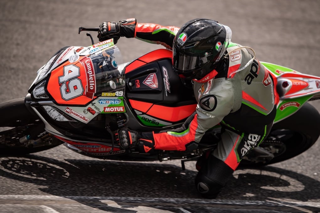 Enzo Chiapello (moto n. 49, nella foto sopra, ndr) parte impostando il suo passo riuscendo a girare in 2’00 alto. Enzo, in sella alla sua Aprilia RSV4, porta a termine la gara a soli due decimi da chi lo precede riuscendo a mettersi dietro un avversario.