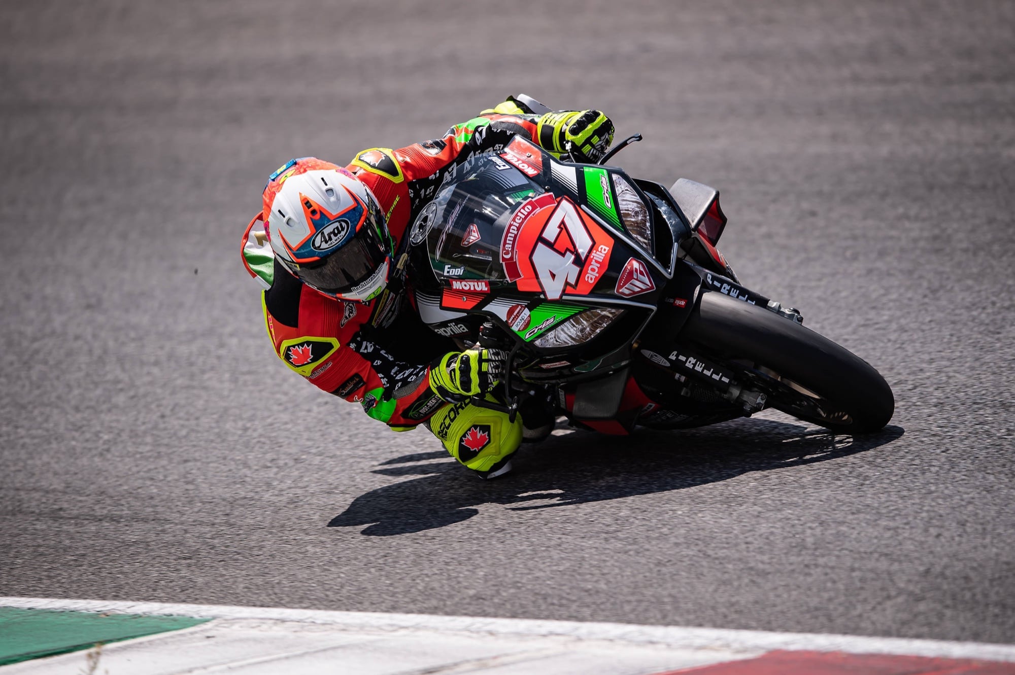 Scarperia (Firenze), 5 Luglio 2020 - Gara 2 al Mugello Circuit per Nuova M2 Racing al primo round del Campionato Italiano Velocità. Attacca alla prima delle arrabbiate passando Michele Pirro, derapa alla seconda delle Arrabbiate ma con un controllo totale della sua Aprilia RSV4 riesce a mantenere la posizione da leader fino al decimo giro quando, alla San Donato, si assesta in seconda posizione che mantiene fino alla fine pur senza tirarsi indietro opponendo una resistenza eroica a gomma ormai finita.