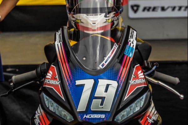Nelle immagini di sfondo: Jody Barry (moto n. 11) e Anthony Mazziotto (moto n. 516), rispettivamente 2° e 3° nel campionato MotoAmerica 2022, classe Twins Cup. Immagini tratte dai loro profili social.