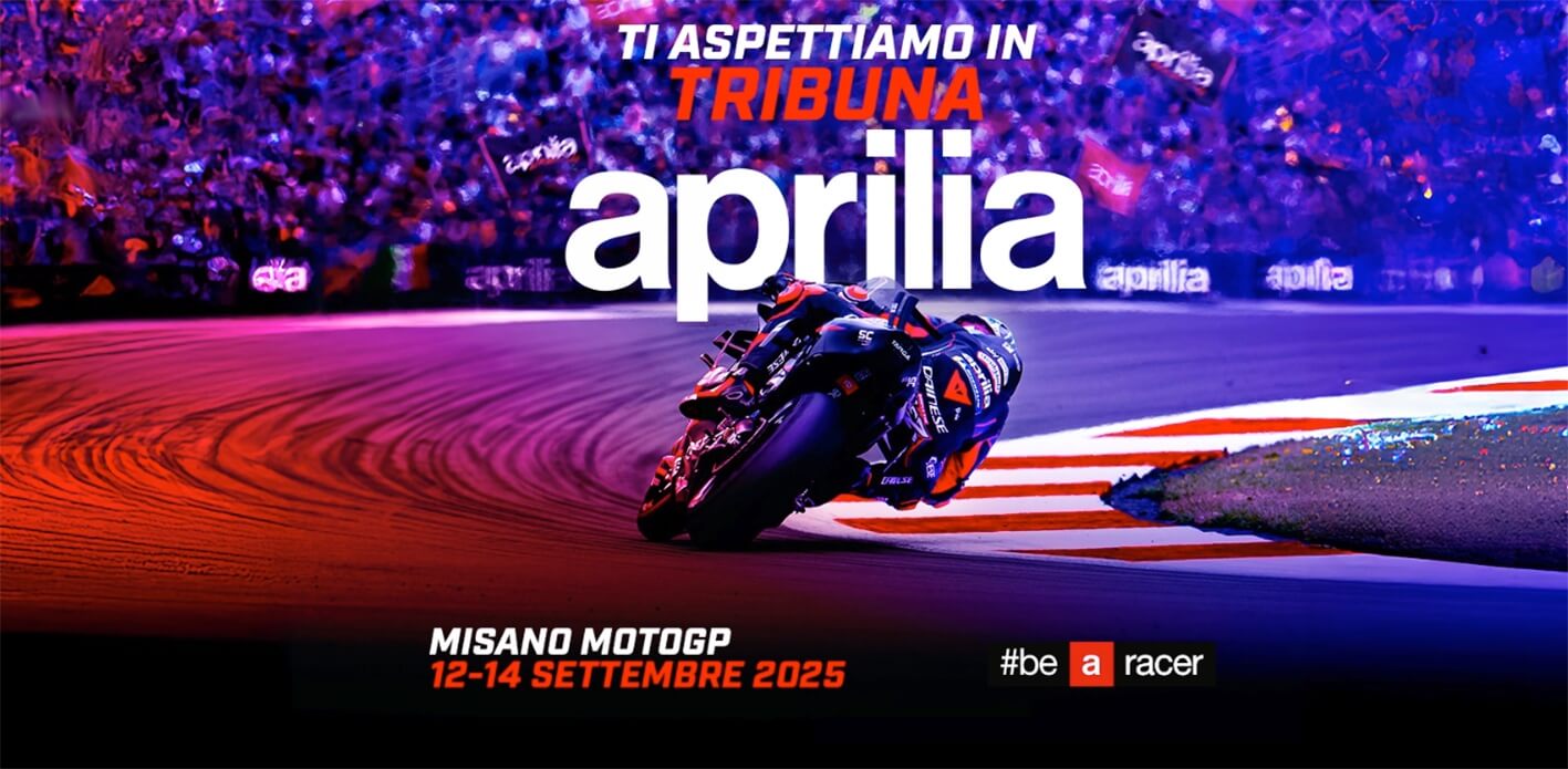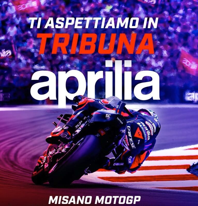 L’APPUNTAMENTO PER I VERI APPASSIONATI, PER VIVERE IN PRIMA FILA LE EMOZIONI DELLA MOTOGP, È A MISANO SABATO 13 E DOMENICA 14 SETTEMBRE. MARCO BEZZECCHI E JORGE MARTIN ARRIVANO AL GP DI CASA SULL’ONDA DEGLI ULTIMI FANTASTICI RISULTATI, SARÀ UN WEEKEND ADRENALINICO E LA TRIBUNA APRILIA È IL POSTO PERFETTO PER VIVERLO DA PROTAGONISTI. TANTI I BENEFIT PER GLI OSPITI: TRIBUNA COPERTA, UN ESCLUSIVO KIT APRILIA, PARCHEGGIO RISERVATO PER MOTO E AUTO, GUARDAROBA, ANIMAZIONE E TANTI OSPITI A SORPRESA.