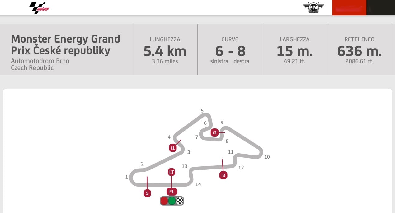 Il tracciato di Brno fa parte della storia del Motomondiale. Ha ospitato 51 Gran Premi, secondo solo al TT di Assen che domina la virtuale classifica con 71 edizioni. Molto è cambiato nel corso degli anni, dall'originale circuito stradale di quasi 14 chilometri si è ridimensionato agli attuali 5.4, pur rimanendo uno dei più spettacolari ed impegnativi in calendario.