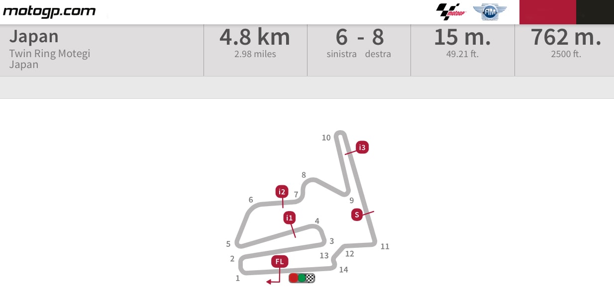 Ora il banco di prova è il Twin Ring di Motegi, una pista non facile, contraddistinta da bruschi stop-and-go e con un asfalto mediamente abrasivo che stressa particolarmente lo pneumatico anteriore. La posizione del tracciato, immerso in una folta zona boschiva, lo rende inoltre suscettibile a condizioni metereologiche particolari come foschia e umidità.