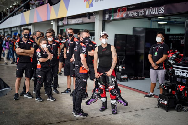 Maverick Viñales (moto n. 12): "Anche se il risultato non è certo quello che vogliamo, è stato un weekend positivo. Oggi è stato forse il giorno più importante nel percorso di crescita da quando sono in Aprilia, perché abbiamo trovato un setting davvero buono col quale sono andato forte nel warm up e col quale mi sono trovato bene anche in condizioni di bagnato.