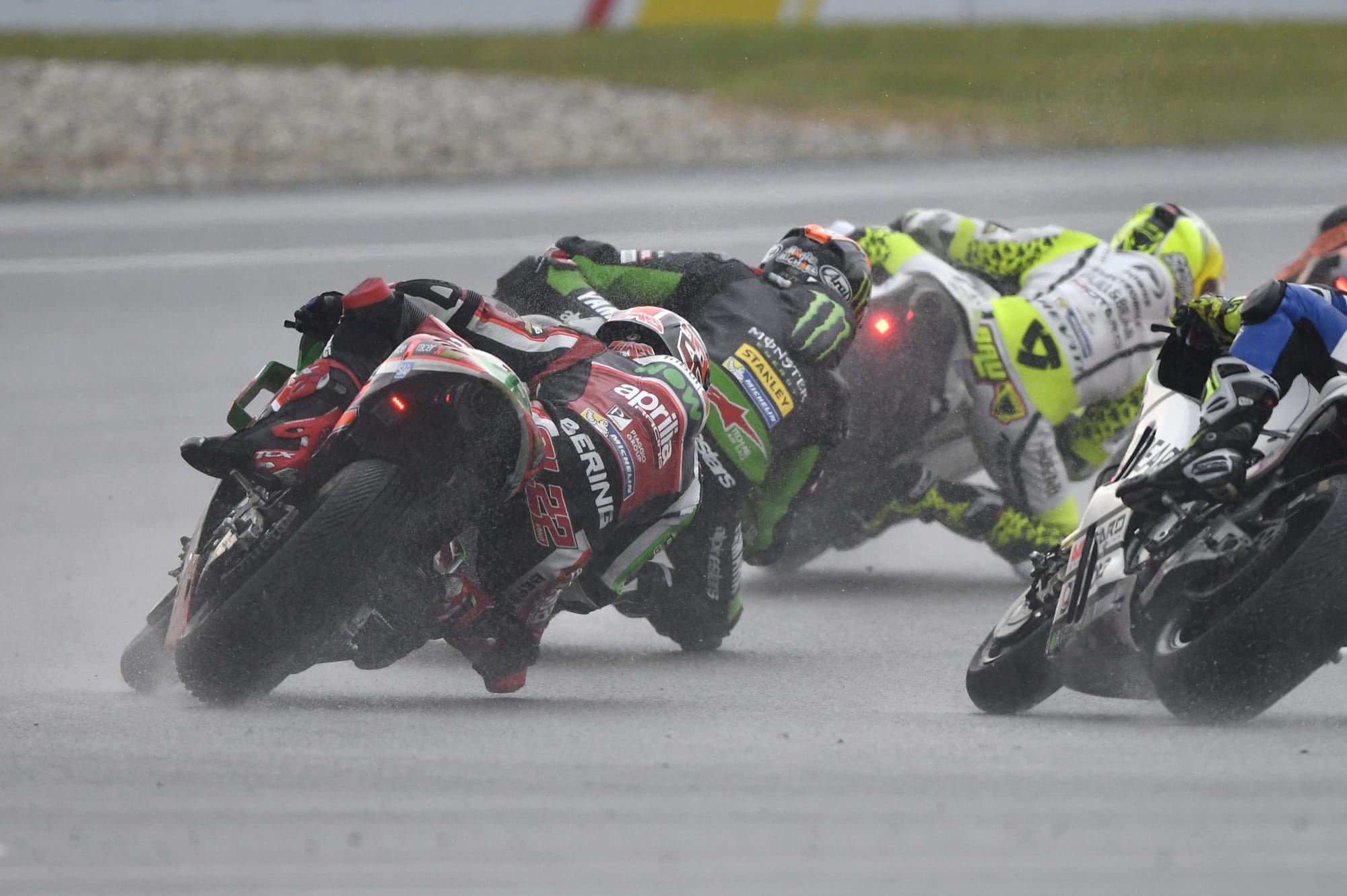 Sepang (Malesia), 29 ottobre 2017 – La pioggia, caduta copiosa a pochi minuti dal via della penultima gara della MotoGP 2017, in Malesia, non è stata di aiuto a Sam Lowes. L’unico pilota dell’Aprilia Racing Team Gresini in gara, a causa del forfait di Aleix Espargaró, è caduto nel corso del quinto giro, mentre era in lotta per un piazzamento a punti, a causa delle condizioni dell’asfalto. E’ riuscito a ripartire ma, dopo essere rientrato ai box per il cambio moto, è definitivamente uscito dalla gara al decimo giro.