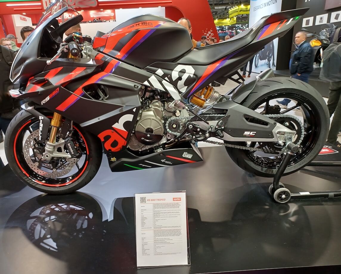 APRILIA RS 660 TROFEO @ EICMA 2024. Wide mag photo.