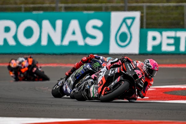 15 ottobre 2023 - Ci ha creduto nella vittoria, ci ha provato e l'ha mancata per 3 decimi, dopo una gara straordinaria. Il secondo posto di Maverick Viñales in Indonesia è riassumibile così, un podio meritato dopo aver lottato sia con Martin (poi caduto) sia con Bagnaia. E, nel finale, contenendo con autorevolezza gli attacchi di Quartararo.