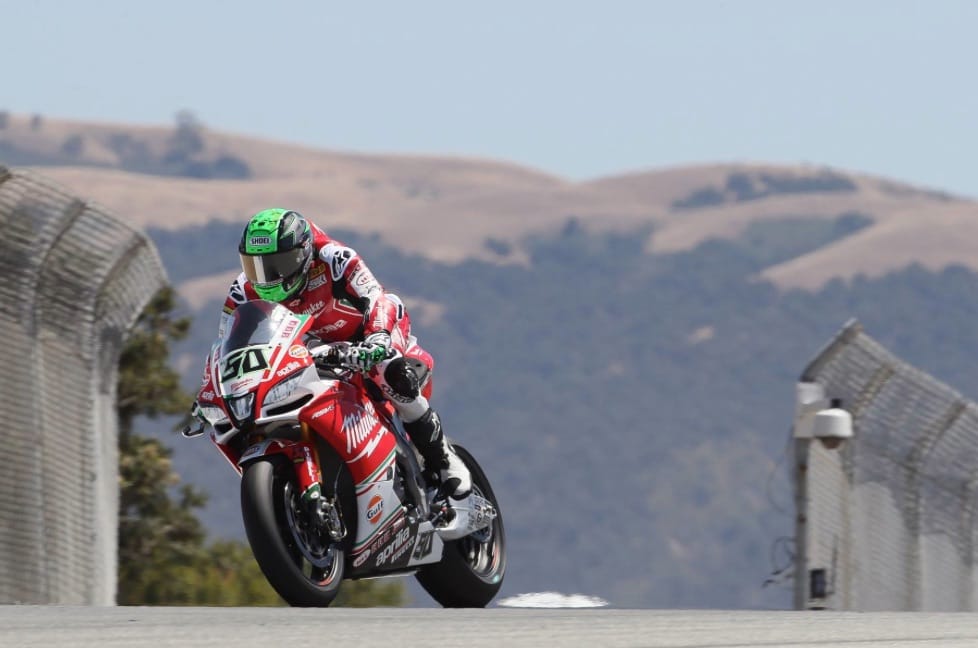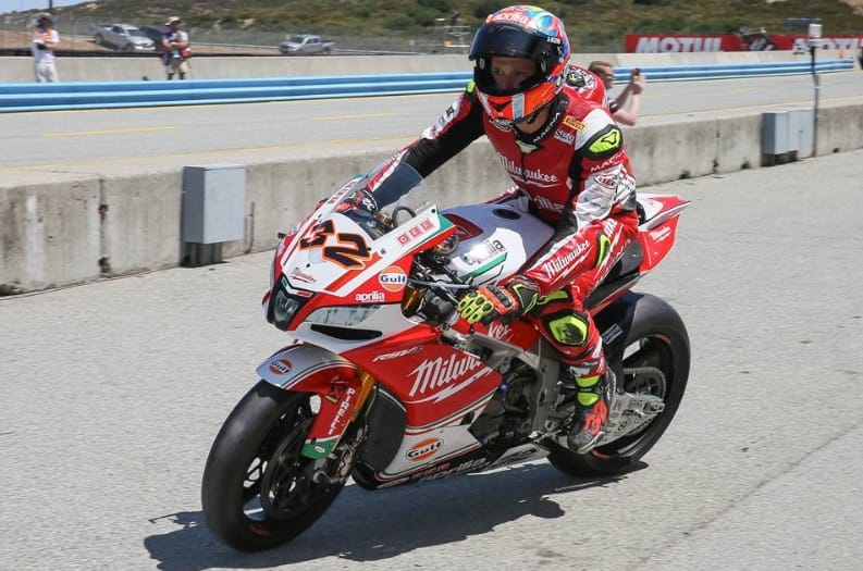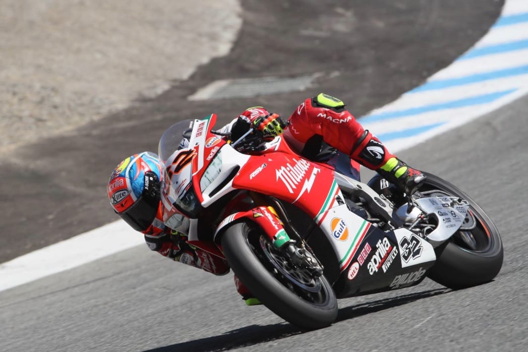 Milwaukee Aprilia nella Gara 1 di Laguna Seca. Milwaukee Aprilia è riuscita a recuperare 6 punti da una deludente Gara 1 a Laguna Seca, che ha visto la conclusione di Lorenzo Savadori in 10ª posizione e il ritiro di Eugene Laverty. Le sessioni della Superpole sembravano promettenti per il team, protagonista Lorenzo in un’agguerrita corsa per segnare il tempo più veloce in Superpole 1 e raggiungere Eugene nella lotta per la pole position. Eugene, dopo un’ottima prestazione nelle sessioni di prove libere, ha concluso la Superpole 2 in P5 sulla griglia di partenza, segnando il migliore risultato di qualifica dell’anno. Lorenzo ha poi concluso in P10, dopo un errore che gli è costato il tempo sul giro più veloce. Eugene è partito con un ottimo ritmo di gara, mantenendo la 5ª posizione dietro al gruppo di testa. Tuttavia, a causa di un problema con la ruota anteriore ha perso grip e feeling, cadendo alla Curva 3 prima della metà della gara. Lorenzo ha mantenuto un ritmo di fuga costante, restando in posizione centrale subito dietro a Torres e Camier. Pur dovendo fare i conti con i problemi di grip sull’anteriore, è riuscito a consolidare la sua posizione arrivando 10° e facendo guadagnare 6 punti al team.