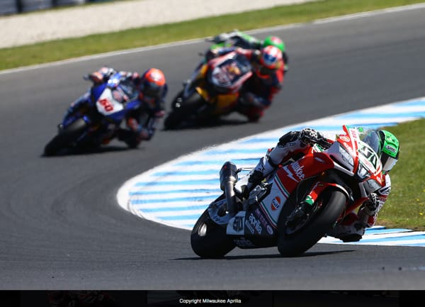 Phillip Island (Australia), 27 febbraio 2017 – Milwaukee Aprilia ha conquistato punti all’arrivo in Gara 2 a Phillip Island, dopo un weekend difficile nel primo Round del Campionato. Secondo le nuove regole per il 2017 che ha visto una griglia inversa per la prima volta nel Campionato mondiale Superbike, i piloti Lorenzo Savadori ed Eugene Laverty hanno iniziato rispettivamente all’11° e al 5° posto in griglia. Erano nel bel mezzo dell'azione, con entrambi i piloti in rapido progresso sulle loro nuove Aprilia RSV4 RF. Dopo un incidente sabato, Lorenzo era determinato a progredire in Gara 2. Ha eseguito alcuni buoni passaggi e rapidamente ha dimostrato un forte ritmo terminando 9° con 7 punti.