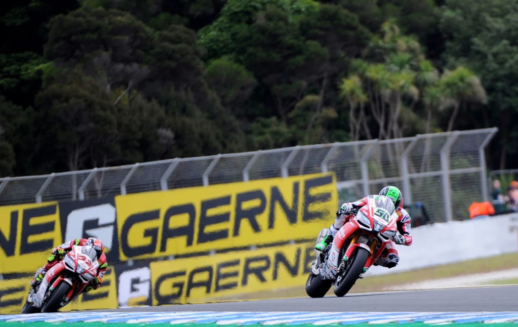 Phillip Island Grand Prix Circuit, 23 Febbraio 2018. L'Aprilia Milwaukee ha iniziato alla grande nelle Prove Libere di Phillip Island: Lorenzo Savadori ed Eugene Laverty hanno terminato la giornata in 1a e 3a posizione, aggiudicandosi automaticamente l'ingresso alla Superpole 2. Nonostante le condizioni meteo variabili, i due piloti hanno dimostrato di saper mantenere una velocità costante sia sull'asciutto che sul bagnato. Entrambi hanno ottenuto il loro miglior tempo nelle Prove Libere 2: Lorenzo con il suo eccezionale 1'30,407 è stato il più veloce della giornata, ottenendo la prima posizione, mentre Eugene con il suo 1'30,746 ha ottenuto la terza posizione, distanziato di 0,339s.