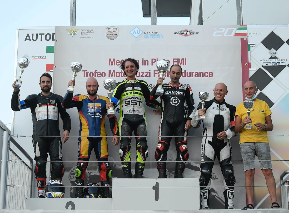 Magione (Perugia), 13 settembre 2020 - I piloti del Trofeo Moto Guzzi Fast Endurance 2020 sono stati protagonisti di un altro emozionante fine settimana “racing” all’Autodromo dell’Umbria, a Magione, dando vita a due combattutissime gare “mini endurance” in sella alle Moto Guzzi V7 III.