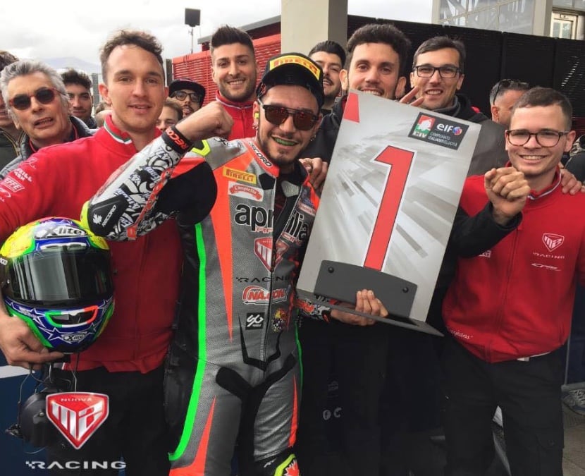 NATIONAL TROPHY 1000. La riconferma non è mai facile ma Eddi La Marra ha già dimostrato di non temere nessuno. Con due vittorie consecutive nei primi due round del National Trophy 1000, il pilota di Ferentino è in testa al campionato a punti pieni. La Marra si è trovato subito a suo agio in sella alla nuovissima Aprilia RSV4 1100 Factory grazie ai tecnici Nuova M2 Racing che sono riusciti a trovare un equilibrio perfetto permettendogli di imporsi su tutti gli avversari.