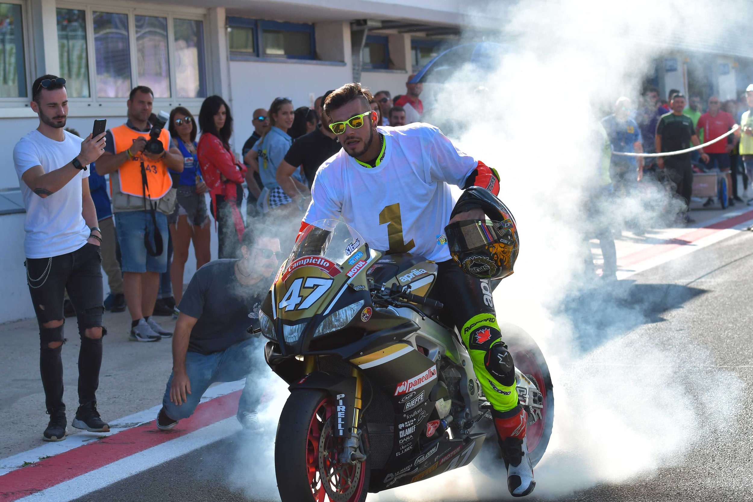 Eddi La Marra - National Trophy 1000 (moto n. 47): “Per tutto il weekend ho lavorato insieme a Nuova M2 Racing in ottica gara e per questo mi aspettavo di essere competitivo ma non mi sarei mai aspettato di riuscire ad andare così forte. Vallelunga è una pista che mi piace e sono contento di aver vinto qui davanti al mio pubblico, ai miei amici e agli sponsor che hanno reso possibile questa vittoria in campionato. Ci tengo a ringraziare Nuova M2 Racing perché in tutte le gare mi ha messo a disposizione una Aprilia RSV4 1100 Factory incredibile, perfetta in ogni situazione per riuscire a portare a casa il titolo. Faccio i complimenti ad Alex Sgroi perché per la seconda volta consecutiva sale sul podio e non me lo aspettavo”.