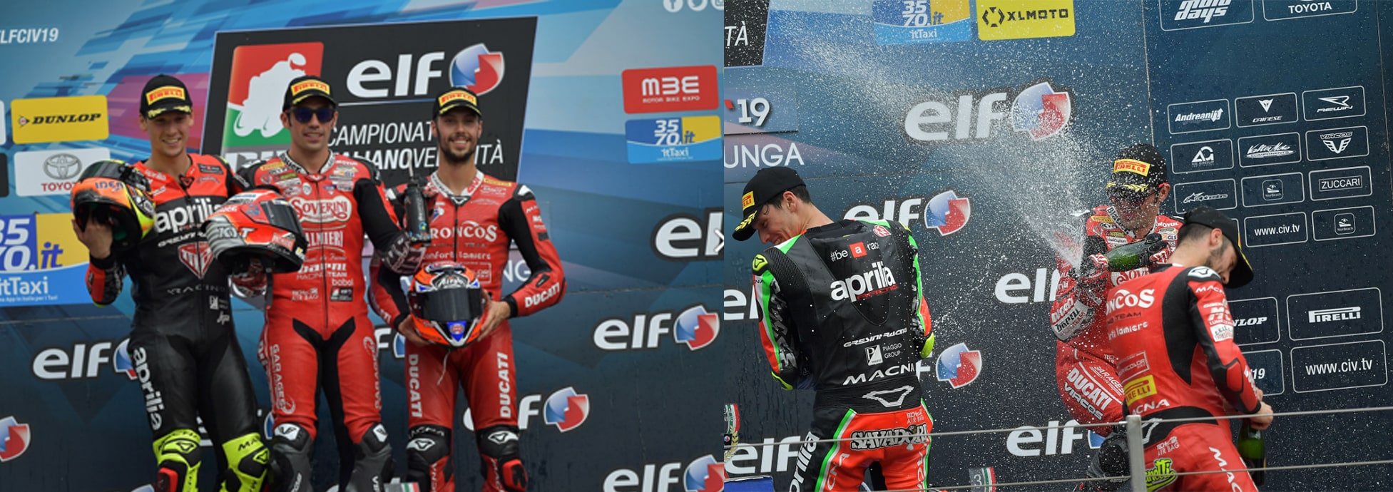 Per Nuova M2 Racing si chiude una stagione superlativa che rimarrà nella storia. Vittoria in campionato nel National Trophy 1000 con Eddi La Marra vincendo sin dalla gara d’esordio con la nuovissima RSV4 1100 Factory. Grandissimi successi in Superbike con Lorenzo Savadori che, in sella all’Aprilia RSV4 FW-STK, spezza lo strapotere Ducati firmando ben tre vittorie a cui si aggiungono altri sei podi. La crescita costante di Alex Sgroi ha sbalordito tutti gli addetti ai lavori, il secondo e terzo posto delle ultime due gare sono il sigillo che portano il catanese al meritato terzo posto in campionato. Aprilia supera tutte le case nel National Trophy 1000 e consolida l’ottimo secondo posto nel massimo campionato tricolore. Top ten per Federico D’annunzio che gara dopo gara è riuscito a trovare il giusto feeling che gli ha permesso di migliorare costantemente le prestazioni in pista.