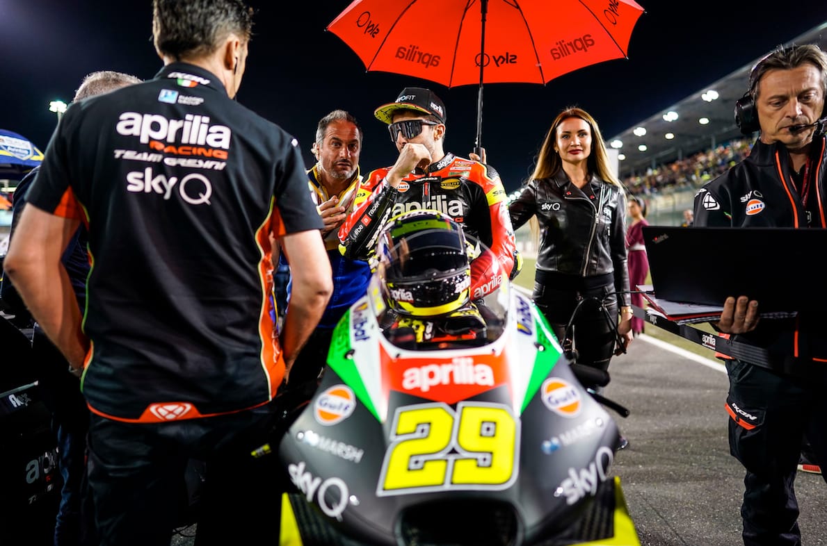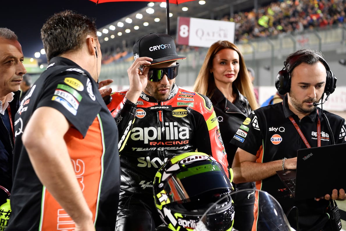 Per Andrea Iannone la gara del Qatar è stato, di fatto, il primo “long run” in sella alla nuova RS-GP. Andrea, penalizzato dalla partenza in settima fila non ha potuto mantenersi vicino ai primi ma, una volta sgranato il gruppo, ha preso un passo degno di ben migliori piazzamenti risalendo fino alla tredicesima posizione. Il duello perso con Lorenzo sul rettilineo finale lo ha consegnato alla quattordicesima casella che gli regala comunque i primi punti in campionato ma, soprattutto, conferma il suo trend di crescita continua, esattamente il primo obiettivo suo e del suo team in questa fase della stagione.