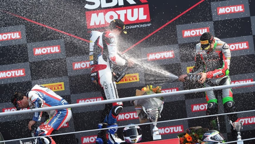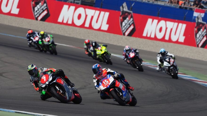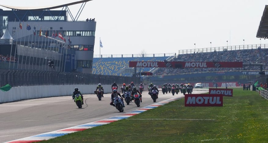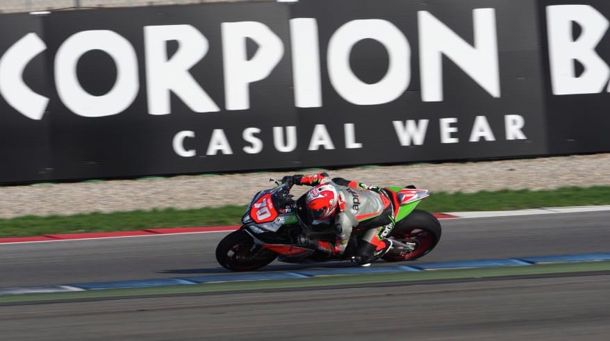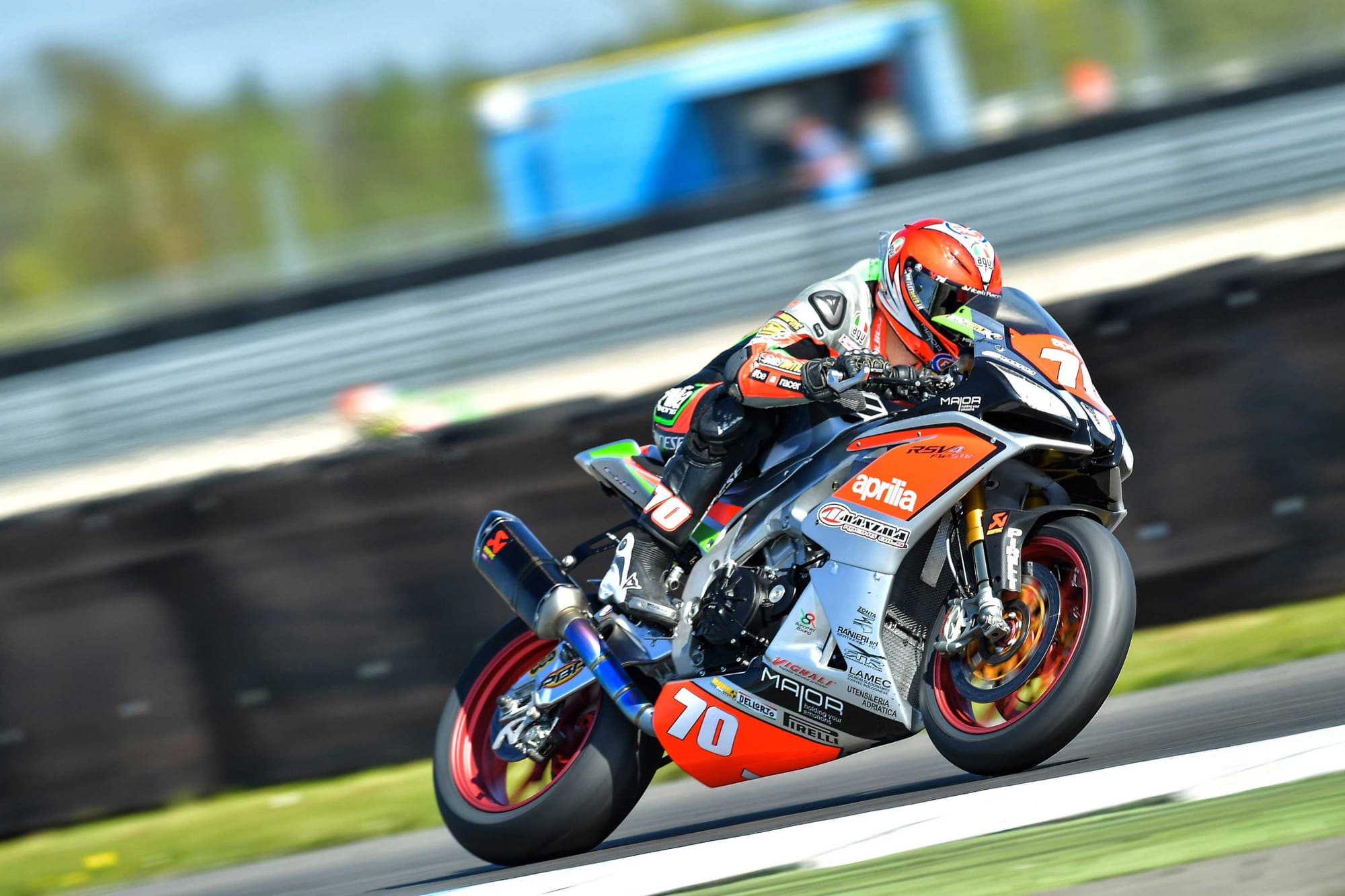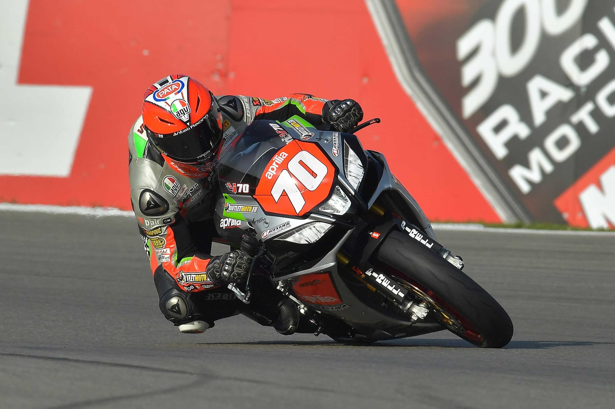 Assen (Olanda), 22 aprile 2018 –Ottimo lavoro dei tecnici Aprilia Racing Team che riescono a consegnare due RSV4 FW-STK molto performanti nelle mani di Maximilian Scheib e Luca Vitali. Il primo ha un buon stacco frizione che gli permette di non perdere dai primi prendendosi il terzo posto già alla fine del primo giro.