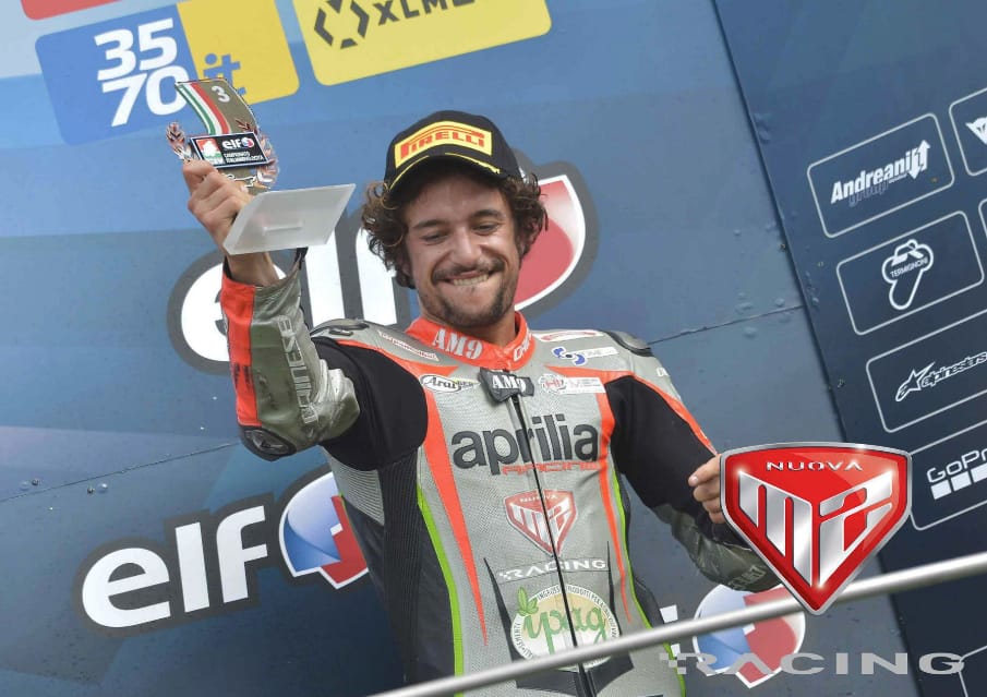 Andrea Mantovani (moto n. 9): “Una gara stupenda. Sono riuscito a spingere forte con la mia Aprilia RSV4 FW-STK fin dai primi giri. Mi sono attaccato a Ferrari cercando di fare la mia gara e pensando di attaccarlo negli ultimi giri, in realtà verso la fine mi sentivo molto al limite e ho preferito portare a casa un buonissimo terzo posto dopo aver preso anche qualche rischio.