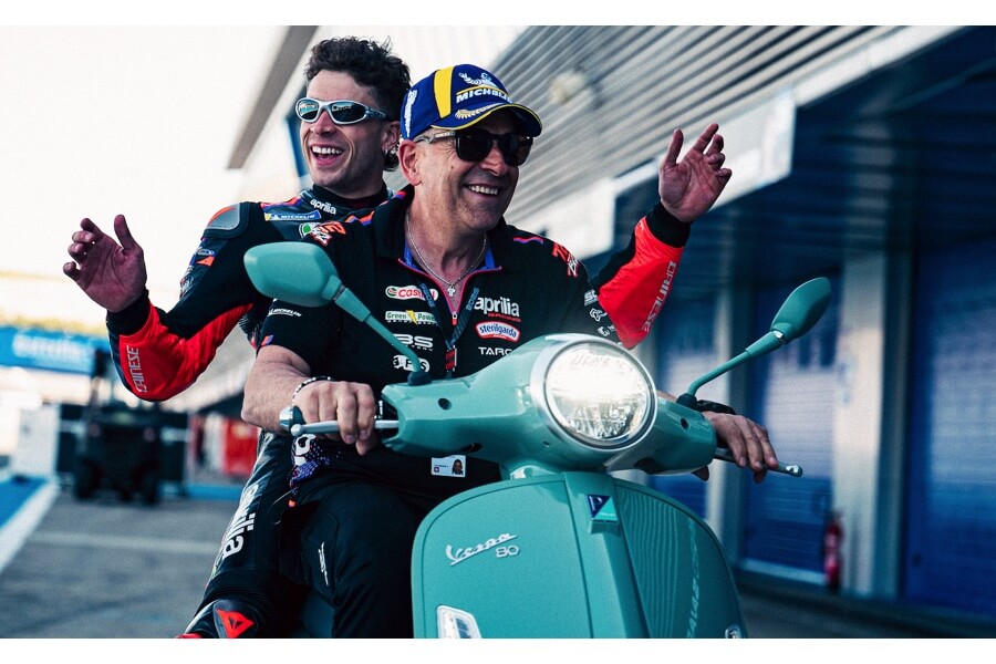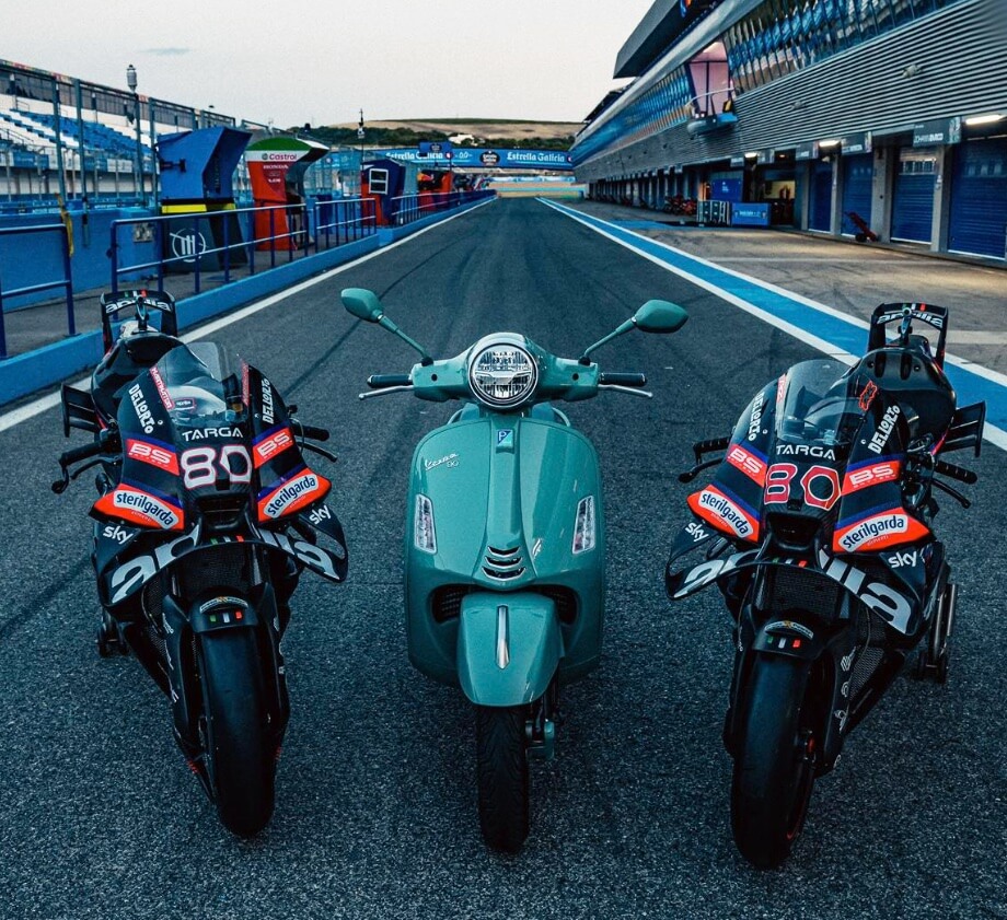 A Jerez, il team Aprilia Racing ha reso omaggio agli 80 anni di Vespa (1946-2026); co-protagoniste nel paddock, le serie speciali celebrative Vespa GTS 80th e Vespa Primavera 80th.