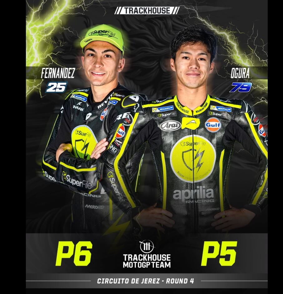 A JEREZ, QUATTRO APRILIA TRA I PRIMI SEI: MARCO BEZZECCHI SECONDO E JORGE MARTÍN QUARTO. DEL TRACKHOUSE MOTOGP TEAM, AI OGURA QUINTO E RAÚL FERNÁNDEZ SESTO