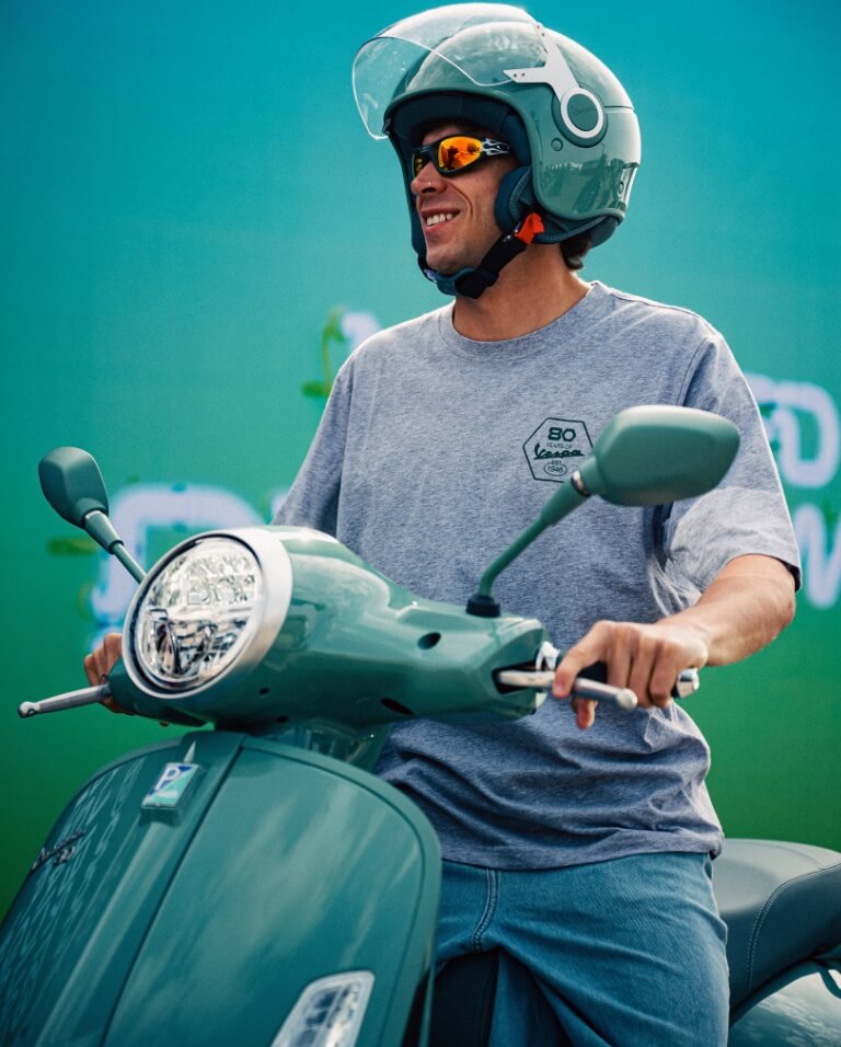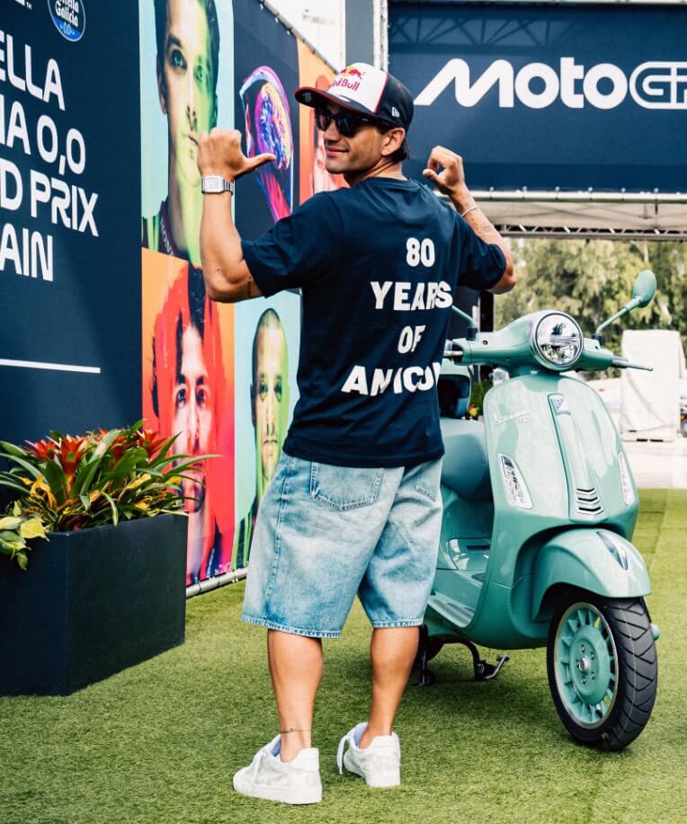 A Jerez, i piloti Bez e Jorge hanno indossato i capi della capsule Vespa ‘80th Anniversary’: