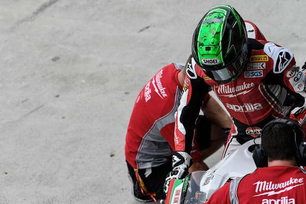 Eugene Laverty, moto n. 50, Aprilia RSV4-RF. Superpole 2 risultato: 1'33.119 – Griglia: P8. Gara 1 risultato: P9 - 7 punti. "In Superpole 2 abbiamo fatto un giro molto veloce con la gomma da qualifica. Sono rimasto sorpreso dalla vicinanza del campo in quella sessione, eravamo in 8a posizione, che non era gran che, ma a soli 0,3 secondi dalla pole, quindi il tempo sul giro è stato decente. In gara sono partito bene, ma fino alla prima curva non c'era spazio per recuperare posizioni e sono stato frenato. C'è stato poi un problema con la fuoriuscita di carburante che ha reso le cose più difficili e mi ha fatto perdere tempo prezioso nel bel mezzo della gara. Sono riuscito a inseguire il gruppo e a raggiungere la 9a posizione per ottenere qualche punto in più, ma senza dubbio è stato un risultato deludente. Parto dalla 6a posizione in griglia per la Gara 2, il che dovrebbe aiutarci a ottenere un risultato migliore, ed è per questo che alla fine ho spinto così forte, per recuperare quella posizione. Alla moto manca ancora un po' di agilità, soprattutto nelle curve strette, e ci dobbiamo lavorare. Il motore è fantastico e funziona egregiamente. Siamo risultati tra i più veloci al rilevatore di velocità, che si è dimostrato uno strumento molto utile".