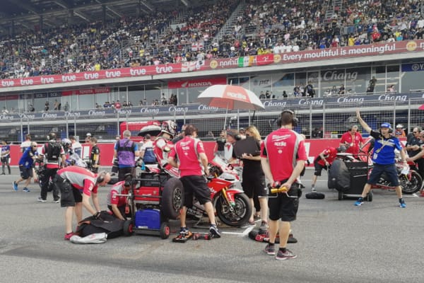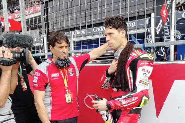 Chang International Circuit (Thailandia), 25/3/18 – Milwaukee Aprilia ha ottenuto 7 punti di consolazione in Gara 2 a Chang con Lorenzo Savadori, ma ne ha persi di più dopo la caduta di Eugene Laverty al 4° giro. Partendo in 6a posizione, nella gara di domenica Laverty ha fatto sperare in un risultato promettente. Da subito tra i primi piloti, ha combattuto a stretto contatto con Fores e Davies. Ma i problemi con la sua gomma anteriore non si sono fatti attendere e ha iniziato a perdere terreno, retrocedendo in 9a posizione verso Torres. Alla curva 6, al quarto giro, lo pneumatico non ha più tenuto e si è piegato, provocando la caduta di Eugene. Torres, che lo tallonava da vicino, è rimasto coinvolto nell'incidente, e ha colpito Eugene a terra cadendo dalla propria moto. Eugene è stato portato subito al centro medico per un forte dolore alla parte basa della schiena. È stato poi trasferito all'ospedale locale, dove gli è stata diagnosticata la rottura del bacino destro. Non è stato necessario alcun intervento chirurgico perché l'osso non sostiene il peso in posizione eretta, ma Eugene dovrà sottoporsi a un recupero intensivo.