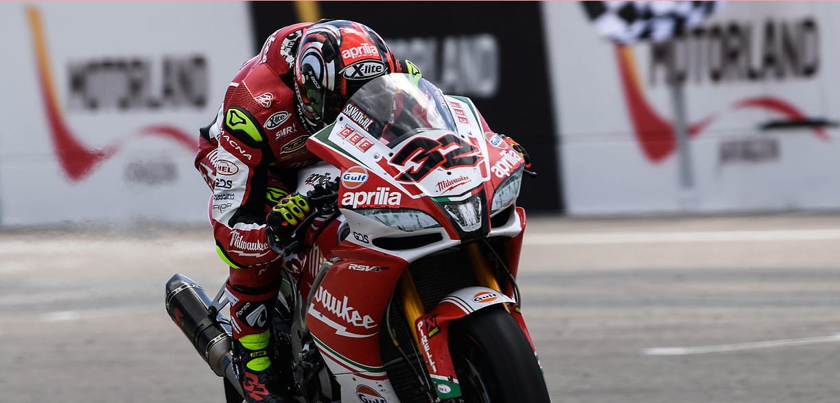 Aragon, Spagna, 15 Aprile 2018 – Lorenzo Savadori è andato a punti per Milwaukee Aprilia in Gara 2 ad Aragon, tagliando il traguardo in decima posizione, mentre il compagno di squadra Davide Giugliano è stato costretto a rientrare ai box per le gomme. Partendo rispettivamente dalla 12ª e dalla 14ª posizione, dopo una serrata Gara 1 nella giornata di sabato, Lorenzo e Davide si dichiaravano ottimisti riguardo alla possibilità di raggiungere un risultato ancora migliore nella gara della domenica, e sfoderavano prestazioni davvero impressionanti nel warm up del mattino, concludendo la sessione in 7ª e 8ª posizione.