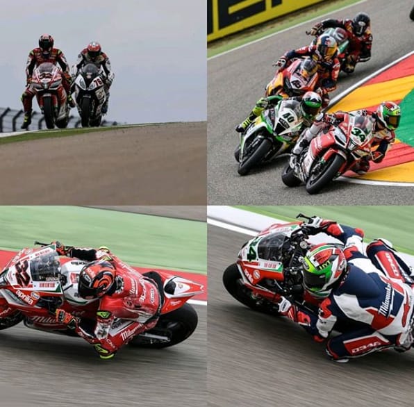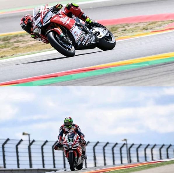 GARA 1. Giugliano precede il compagno di squadra in una Gara 1 segnata dalla bandiera rossa. Entrambi i piloti del team Milwaukee Aprilia finiscono a punti. Il pilota della Milwaukee Aprilia Davide Giugliano ha sopravanzato il compagno di squadra Lorenzo Savadori dopo una ripartenza in Gara 1. Entrambi conquistano punti ad Aragon. Una Superpole piuttosto deludente ha visto Davide e Lorenzo partire rispettivamente in 14ª e 10ª posizione. Una caduta in Superpole 2 ha impedito a Lorenzo di inseguire un giro più veloce. Entrambi i piloti erano fiduciosi per la gara, con il tempo che reggeva nonostante il cielo grigio e l'incombente minaccia di pioggia sul MotorLand Aragon. Alla partenza della gara hanno tutti e due recuperato posizioni; Lorenzo iniziava il 2° giro in 9ª posizione, dopo aver sorpassato Torres, mentre Davide guadagnava la P12, dopo aver superato Baz e Rinaldi, andato largo. Al 3° giro Lorenzo stava tallonando Camier per conquistare l'8ª posizione, ma una caduta dello stesso Camier alla Curva 11 non lasciava a Lorenzo e all'immediato inseguitore Torres lo spazio necessario per evitare la collisione: tutti e tre i piloti si rendevano protagonisti di una paurosa caduta. L'incidente ha costretto i commissari di gara a sventolare bandiera rossa; questo ha permesso a Lorenzo di tornare ai box, mentre i suoi meccanici preparavano la moto di riserva.