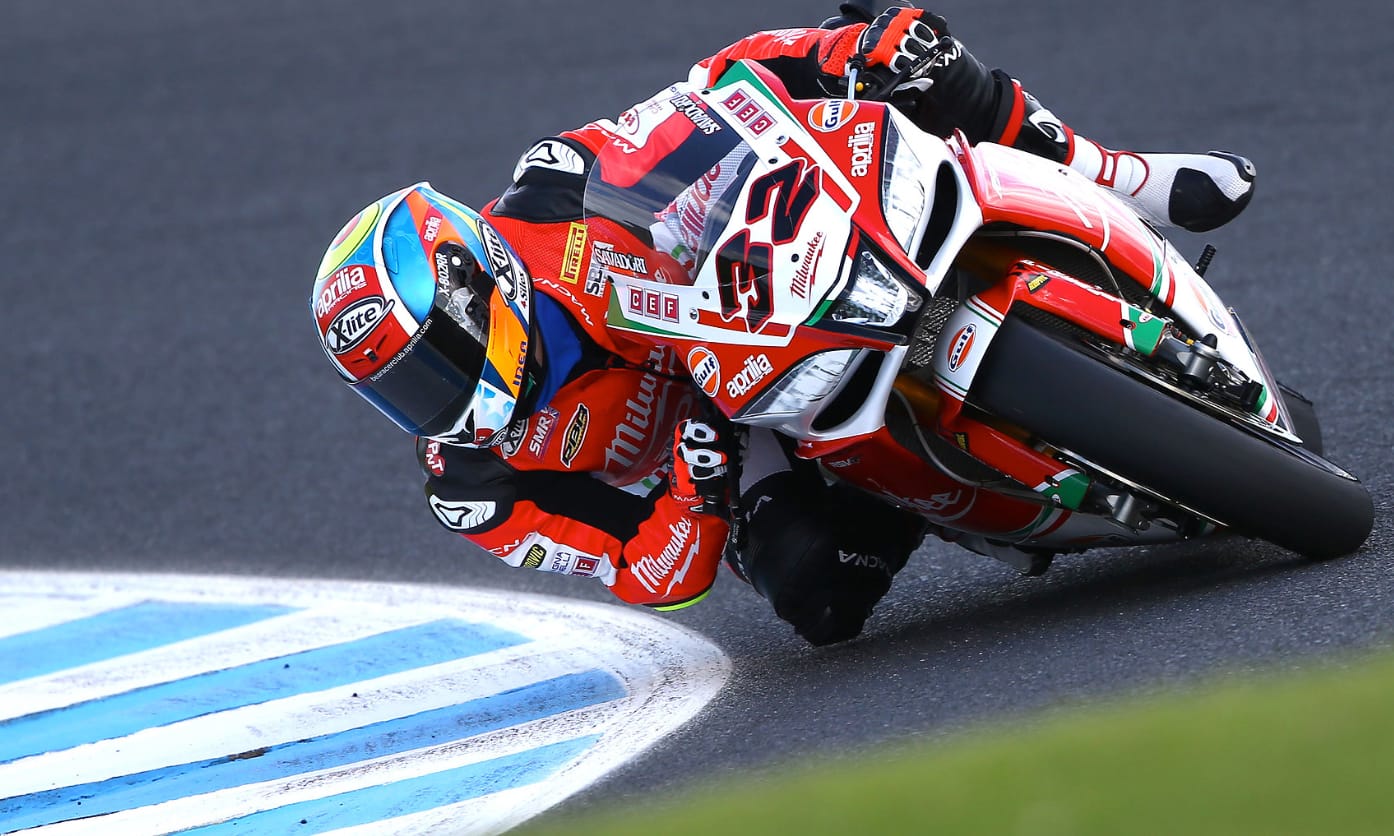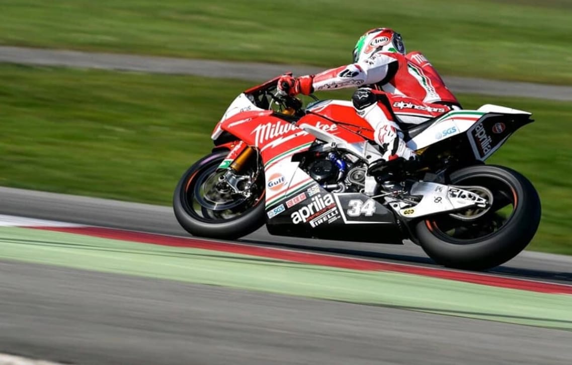 Davide Giugliano #34 - Aprilia RSV4-RF.Risultato in Superpole 1: 1'36.417 - P16 sulla griglia. Risultato in Gara 1: P13 - 3 punti. Griglia in Gara 2: P16 - 6ª fila. Risultato in Gara 2: P11 - 5 punti. “In Superpole ho avuto problemi con il nuovo pneumatico. Era estremamente difficile spingere con questo problema, non mi sentivo sicuro. La P17 è senza dubbio insoddisfacente, infatti avrei voluto partire più avanti. In Gara 1 ho perso parecchio tempo nei primi 6/7 giri. Ho spinto per l'intera gara, ma sinceramente mi aspettavo un ritmo migliore. Ho rimontato di qualche posizione negli ultimi giri per ottenere la P13 e qualche punto, ma sapevo di poter fare meglio.
