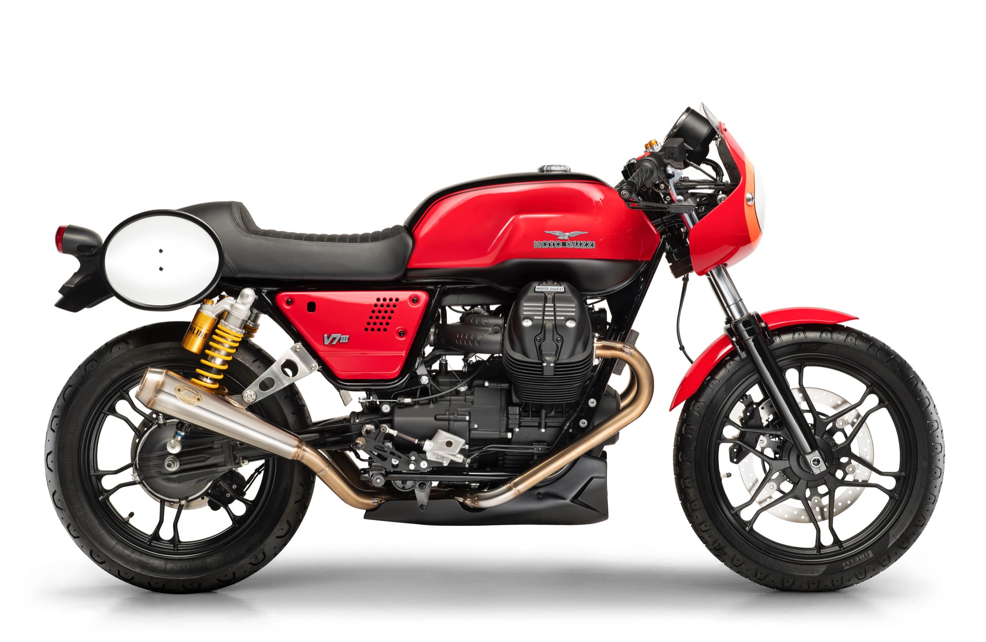 MOTO GUZZI V7 III CON KIT RACING SVILUPPATO DAI GUARESCHI, GOMME PIRELLI DEDICATE. La Moto Guzzi V7 III Stone, moto capace di raccogliere l’apprezzamento di un pubblico estremamente eterogeneo grazie alla sua maneggevolezza e facilità di guida, è la perfetta base di partenza per realizzare una moto assolutamente divertente e sfruttabile in pista anche da chi non vanta un’esperienza pregressa nelle competizioni.