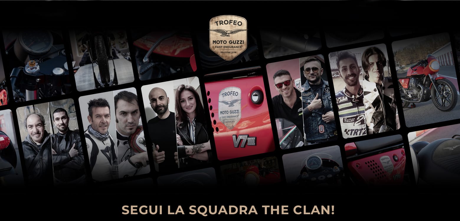 In linea con i sentimenti di amicizia e condivisione che da sempre caratterizzano lo sport più sano, il Trofeo Moto Guzzi Fast Endurance riserva spazio anche agli appassionati Guzzisti della community “The Clan” e ai membri del Moto Guzzi World Club, che scopriranno così nel modo più divertente il lato sportivo dell’Aquila di Mandello. Il team The Clan schiererà una coppia di piloti diversa a ogni appuntamento, per un totale di dieci piloti già selezionati tra i membri della community ufficiale Moto Guzzi.