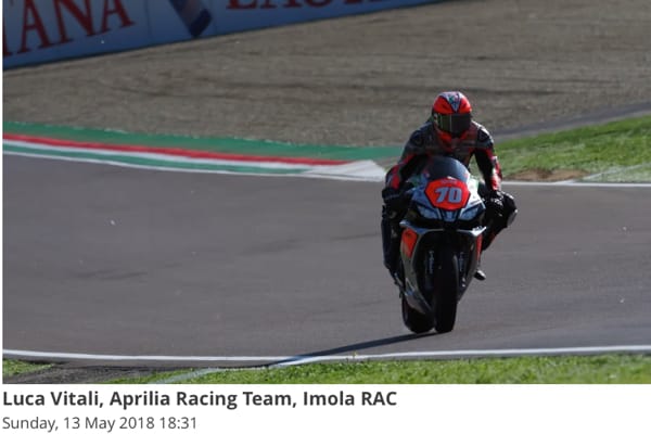 Ottiene punti importanti anche Luca Vitali che, con uno slancio sotto la bandiera a scacchi, ha avuto la meglio su Marino per la sesta posizione finale. L'appuntamento con la Superstock 1000 è per il weekend del 27 maggio sul circuito inglese di Donington Park.