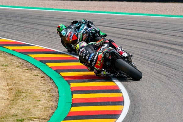 Sachsenring (Germania), 7 luglio 2019 - Con una bellissima gara Aleix Espargaró ha portato la sua Aprilia là dove sempre vorrebbe essere in questa stagione 2019, ovvero agganciato al gruppo in lotta per le posizioni tra la quarta e la decima piazza. Dopo aver distanziato, nella prima parte di corsa, il fratello Pol, è rimasto sempre attaccato al plotone che comprendeva Dovizioso, Mir, Miller, Petrucci, Rossi e Morbidelli. Nel finale, in un bel duello con Morbidelli ha guadagnato la nona posizione ma, all’inizio del penultimo giro, è scivolato alla curva uno vanificando il risultato in termini di punti ma certamente non in quanto a sensazioni positive guadagnate nel weekend.